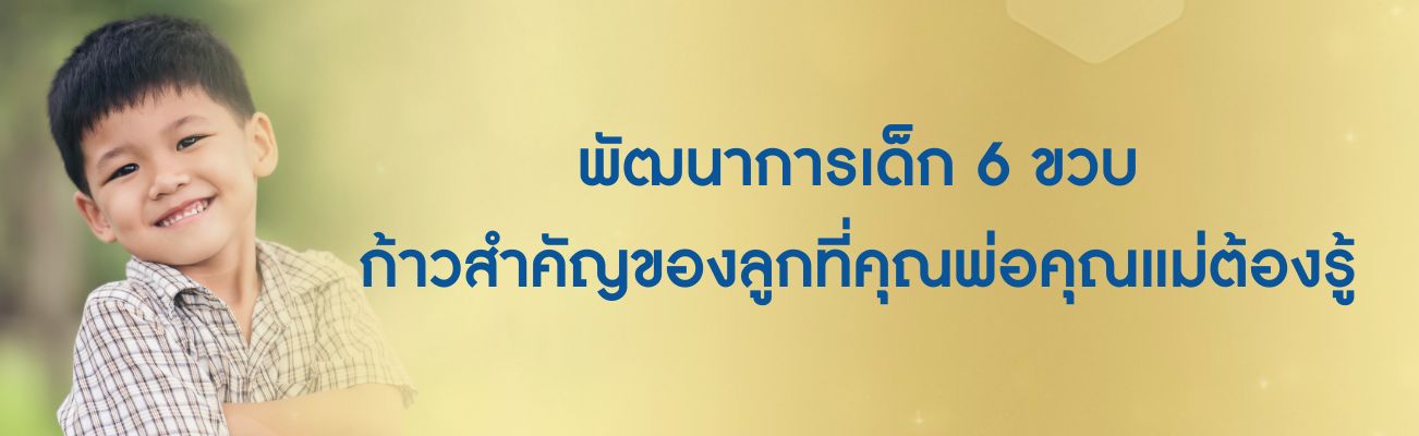 เด็ก 6 ขวบ พัฒนาการทางร่างกายและสมองก้าวหน้าอย่างมาก สามารถสื่อสาร คิดวิเคราะห์ และมีความรับผิดชอบมากขึ้น เริ่มเข้าใจมิตรภาพ และอยากเรียนรู้สิ่งรอบตัวด้วยตนเอง