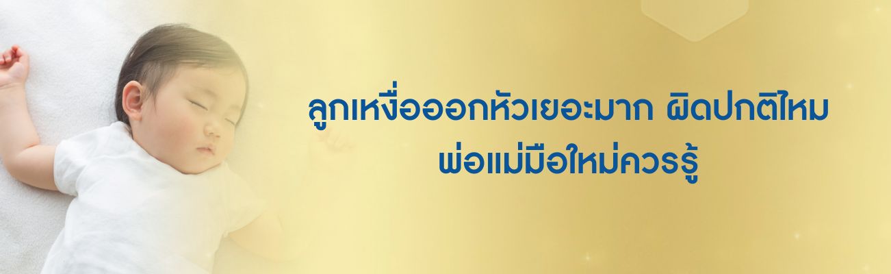 นอกจากนี้ เด็กทารกมักจะใช้เวลาส่วนใหญ่นอนหงาย ทำให้ศีรษะสัมผัสกับพื้นผิวที่รองรับอยู่ตลอดเวลา ซึ่งอาจเป็นสาเหตุให้ความร้อนสะสมและกระตุ้นการหลั่งเหงื่อบริเวณศีรษะได้ง่ายขึ้น โดยเฉพาะเวลาที่นอนหลับลึก ร่างกายจะยิ่งทำงานเพื่อระบายความร้อน ทำให้คุณพ่อคุณแม่สังเกตเห็นว่าลูกเหงื่อออกหัวเยอะ ผมเปียก ได้ง่าย