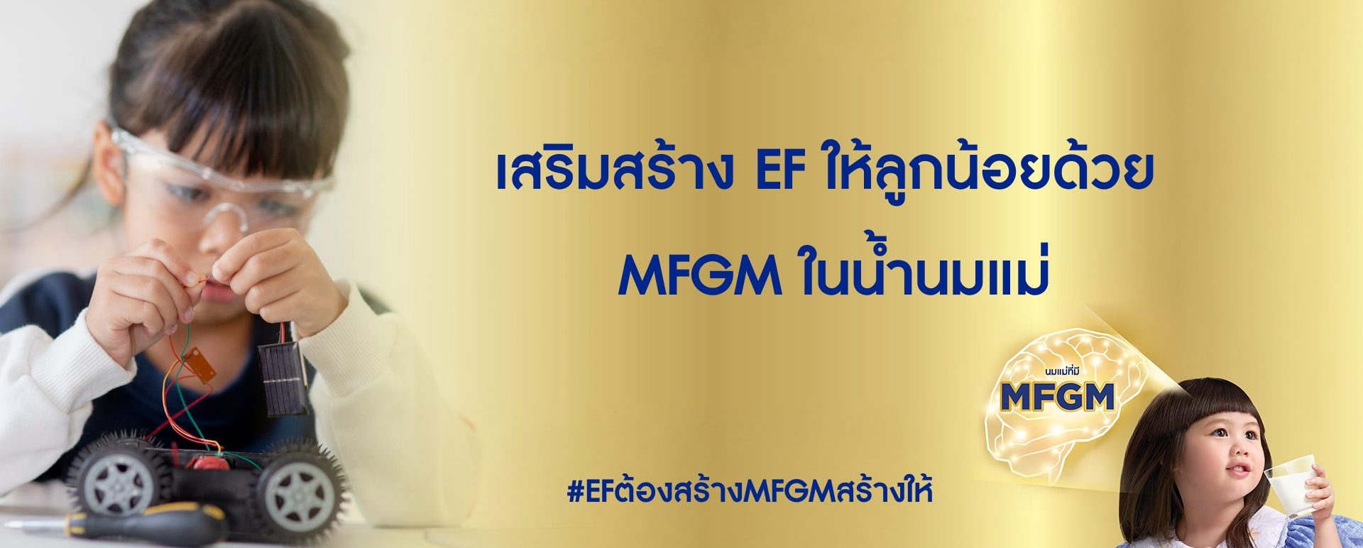 ในวันทารกโภชนาการที่สำคัญที่สุดก็คือ นมแม่ ที่มีสุดยอดสารอาหารอย่าง MFGM หรือเยื่อหุ้มอนุภาคไขมันในนมแม่ ประกอบด้วยไขมันและโปรตีนมากกว่า 150 ชนิด เช่น สฟิงโกไมอีลิน ฟอสโฟลิปิด และแกงกลิโอไซด์ ซึ่งมีบทบาทสำคัญในการสร้างเส้นใยประสาท (Myelin Sheath) ส่งเสริมการสร้างเซลล์สมอง ช่วยพัฒนาสติปัญญาและพฤติกรรม และยังมีงานวิจัยรองรับว่า MFGM ในนมแม่จะช่วยเพิ่ม IQ และทักษะสมองเพื่อความสำเร็จ EF ที่เหนือกว่าตั้งแต่ 5 ขวบปีแรก