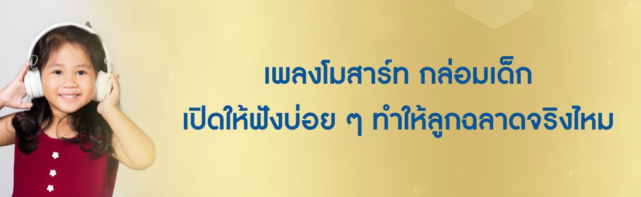 เพลงโมสาร์ท แม้จะไม่มีผลการวิจัยที่แน่ชัดมากพอจะให้การรับรองว่าช่วยทำให้ลูกฉลาดได้จริง แต่...ถ้าหากคุณแม่เปิดเพลงโมสาร์ทให้ลูกในท้องตอนอายุครรภ์ 23-24 สัปดาห์ขึ้นไป สิ่งนี้จะช่วยกระตุ้นพัฒนาการทางระบบประสาทและการได้ยินของทารกในครรภ์ค่ะ เพราะในระยะนี้ทารกน้อยสามารถที่จะได้ยินเสียงจากภายนอกแล้ว การได้ฟังเพลง หรือมีเสียงคุณพ่อคุณแม่พูดคุยและอ่านหนังสือให้ฟัง จะช่วยกระตุ้นพัฒนาการได้ยินของลูก และยังช่วยสร้างสัมพันธภาพอันดีกับลูกน้อยตั้งแต่เมื่อยังอยู่ในครรภ์อีกด้วย