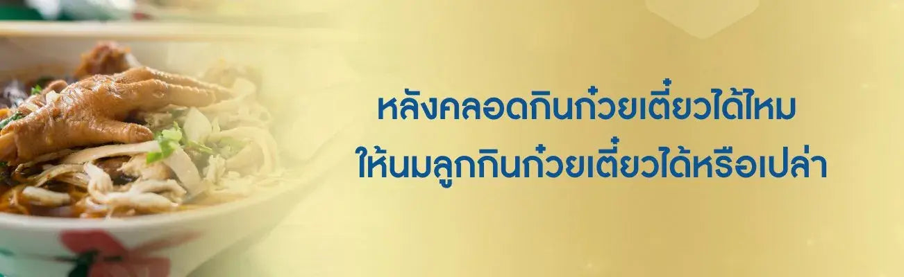 คุณแม่ที่กำลังให้นมลูกกินก๋วยเตี๋ยวได้เช่นกันค่ะ เพราะก๋วยเตี๋ยวถือเป็นหนึ่งในเมนูที่มีสารอาหารค่อนข้างครบครัน ตอบโจทย์โภชนาการที่คุณแม่ควรได้รับ หากคุณแม่กังวลว่าจะได้รับสารอาหารบางชนิดไม่ครบ เช่น DHA, โฟเลต, แคลเซียม รวมทั้งสารอาหารอื่นๆ ที่จำเป็นต่อการฟื้นฟูร่างกายของคุณแม่หลังคลอด และส่งต่อให้ทารกผ่านน้ำนมแม่ คุณแม่อาจพิจารณาเลือกนมสำหรับคุณแม่ตั้งครรภ์และให้นมบุตรเป็นตัวช่วยเสริมสารอาหารที่รับประทานได้ไม่ครบในชีวิตประจำวันค่ะ