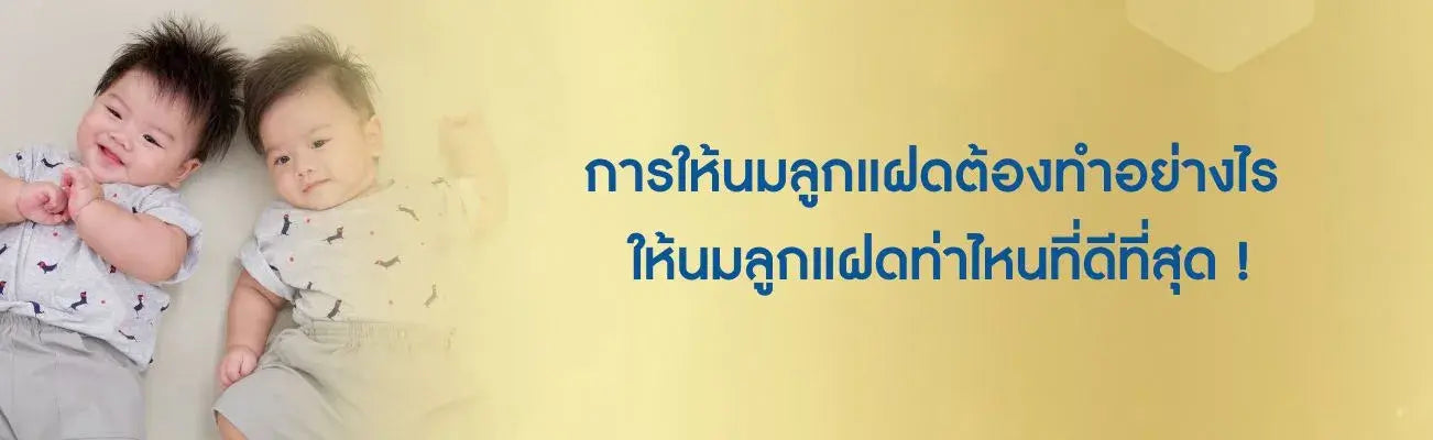คุณแม่ที่มีลูกแฝดสามารถให้นมลูกแฝดพร้อมกันได้โดยใช้ท่าให้นมลูกแฝดที่เหมาะสม เช่น ท่าอุ้มลูกฟุตบอล หรือท่าอุ้มด้านข้าง โดยไม่ต้องกังวลเรื่องน้ำนมไม่พอให้ลูกกินเพราะน้ำนมแม่จะผลิตตามความต้องการของลูก หากลูกดูดนมบ่อยต่อมน้ำนมก็จะผลิตน้ำนมเพิ่มตามความต้องการ หากคุณแม่มีน้ำนมน้อยสามารถใช้เครื่องปั๊มนมช่วยดูดกระตุ้นน้ำนมได้ หรือหากคุณแม่น้ำนมเยอะก็สามารถปั๊มนมเก็บเป็นสต็อกได้เช่นกัน