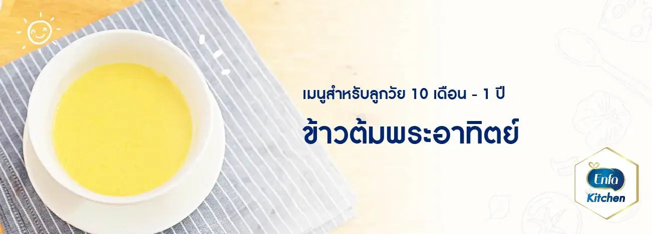 ข้าวต้มพระอาทิตย์ เมนูอร่อยที่มีส่วนผสมอย่างข้าว ปลา และฟักทอง ครบถ้วนโภชนาการที่ลูกน้อยที่เริ่มกินอาหารตามวัยต้องการ เนื้อสัมผัสนุ่มและย่อยง่ายอีกด้วย
