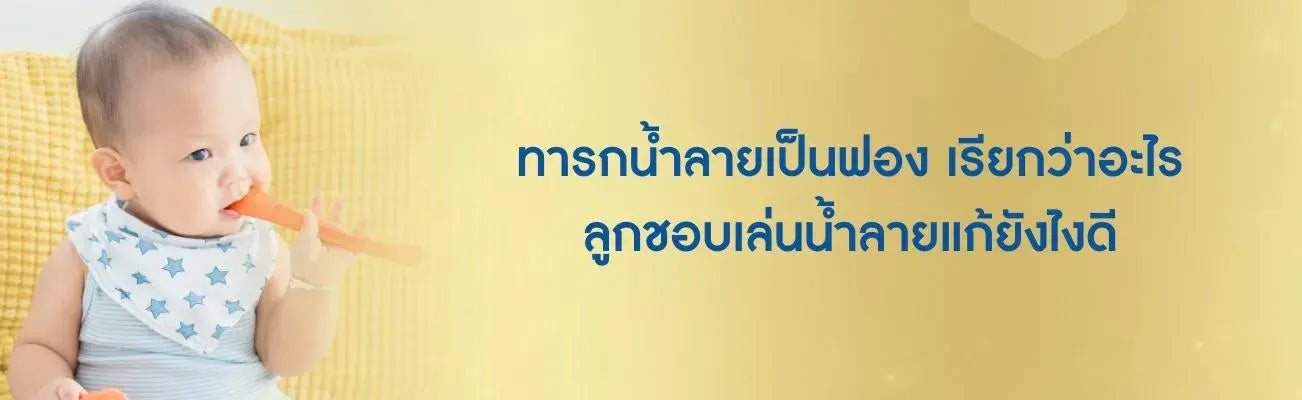 เด็กอายุ 6 เดือนขึ้นไป ฟันของลูกจะค่อย ๆ ทยอยขึ้น ทำให้ลูกมีอาการคันเหงือก และมีน้ำลายไหลออกมามากขึ้น ทำให้ลูกเล่นเป่าน้ำลายและพ่นน้ำลาย