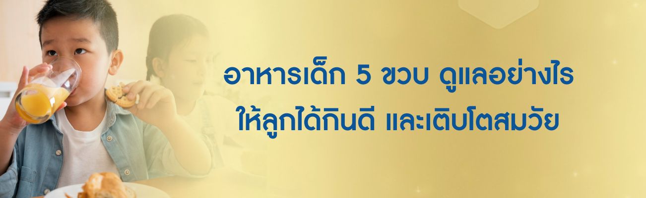 เด็กวัยเรียนอายุ 5 ขวบ ควรต้องได้รับโภชนาการที่รอบด้าน เพื่อส่งเสริมพัฒนาการเด็ก 5 ขวบที่ครบทุกด้านของลูกน้อย ในแต่ละวันคุณพ่อคุณแม่ควรจัดเตรียมอาหารที่ผสมผสานกันทั้งเนื้อสัตว์ ผัก ไขมัน ข้าว แป้ง ผลไม้ ธัญพืช นมและผลิตภัณฑ์จากนม ซึ่งนอกจากจะช่วยให้ลูกน้อยได้พลังงานอย่างเต็มที่แล้ว ก็จะได้รับโภชนาการที่ครบทั้ง 5 หมู่ ซึ่งไม่เพียงช่วยปูพื้นฐานของการสร้างทักษะสมองที่ดี แต่ยังช่วยให้ลูกมีสุขภาพแข็งแรง ไม่เจ็บป่วยง่ายอีกด้วยค่ะ