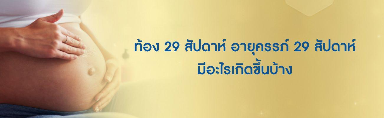 อายุครรภ์ 29 สัปดาห์ กล้ามเนื้อต่าง ๆ และปอดของทารกกำลังเติบโตเต็มที่จนเกือบจะสมบูรณ์แล้ว ขณะที่ศีรษะของทารกก็เริ่มขยายใหญ่ขึ้น เพื่อรองรับสมองที่ขยายตัวมากขึ้น
