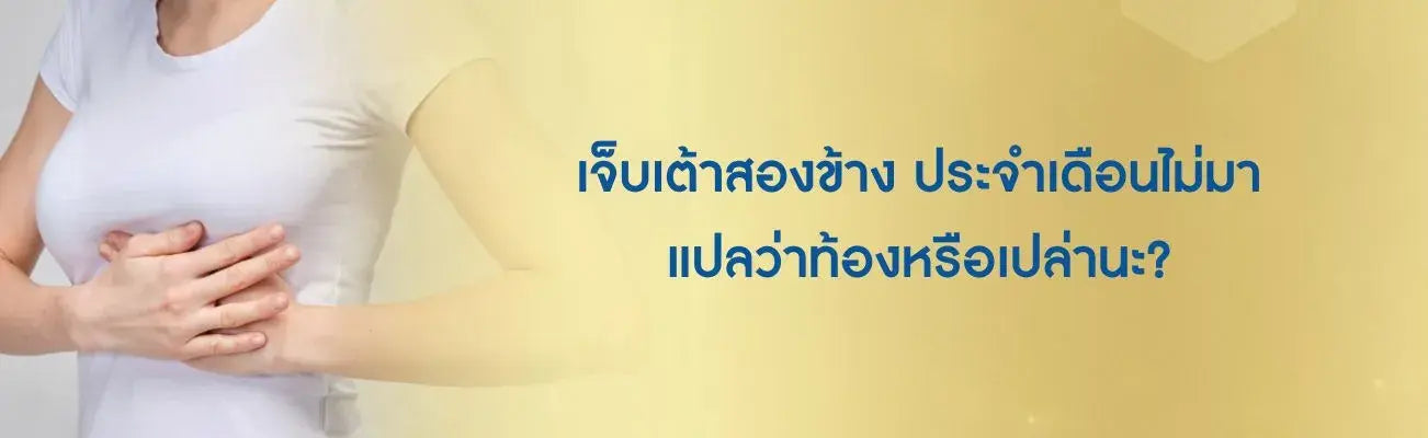 • เจ็บเต้าสองข้าง ประจำเดือนไม่มา แต่ไม่ได้ตั้งครรภ์ เพียงแต่ประจำเดือนอาจมาช้ากว่าปกติ