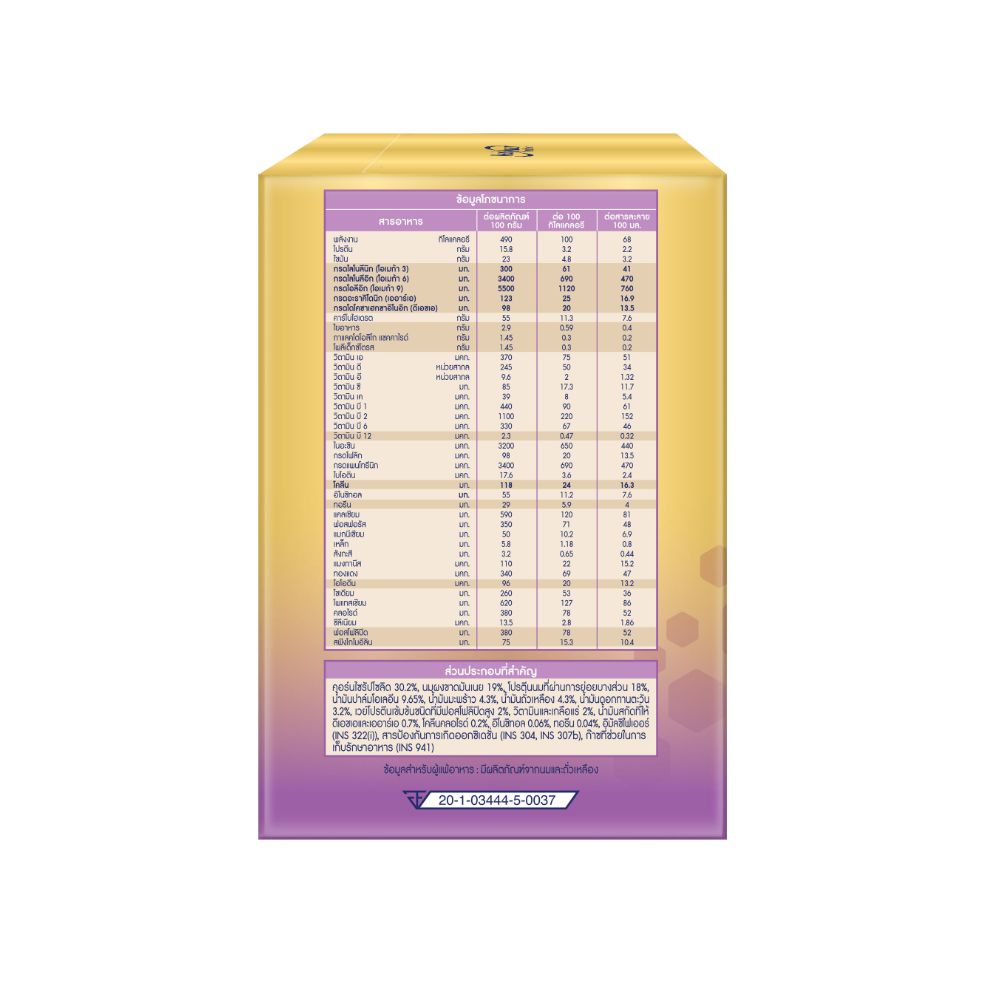 - มี DHA 100 มก. ARA 125 มก. ต่อ 100 กรัม