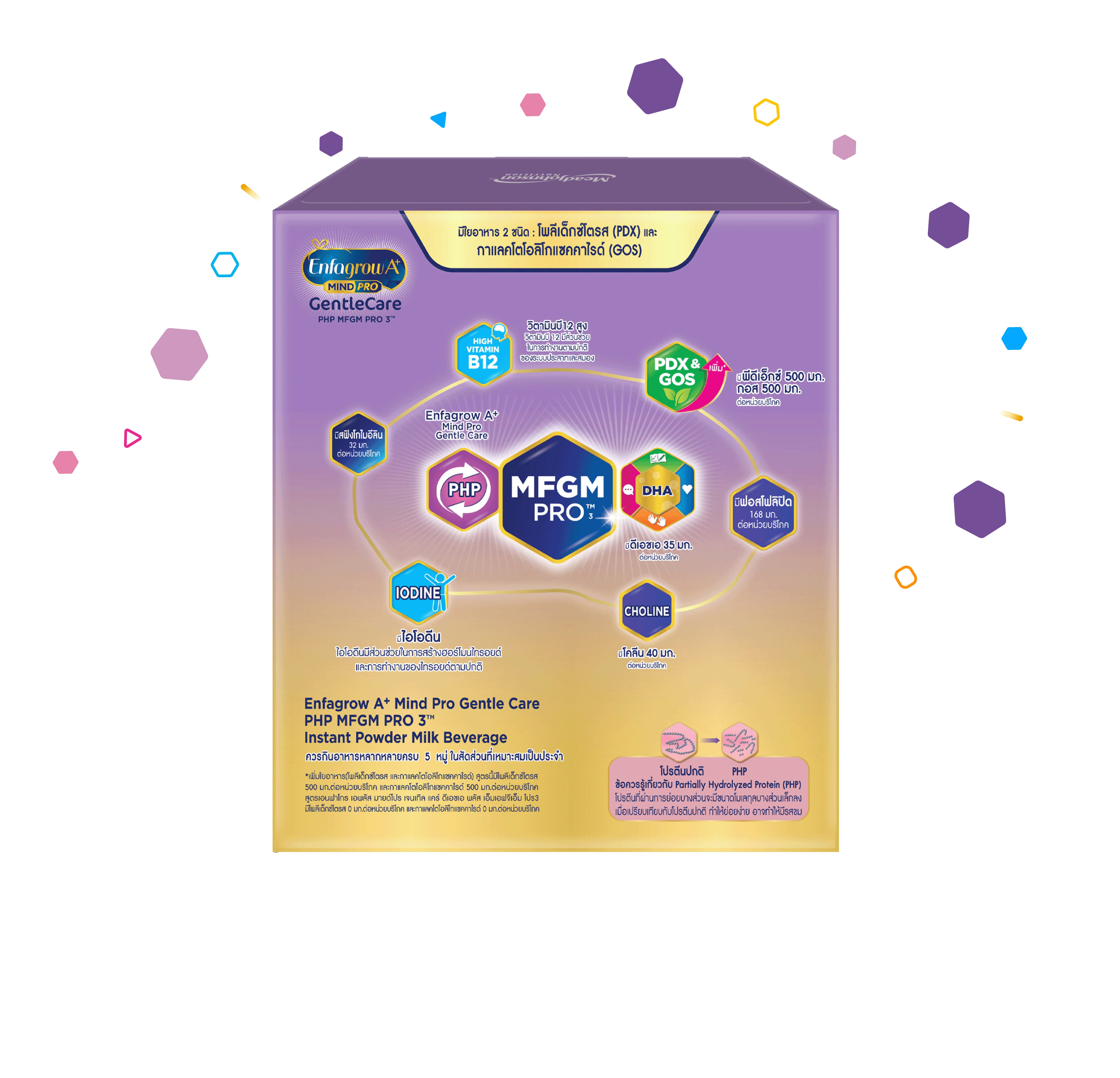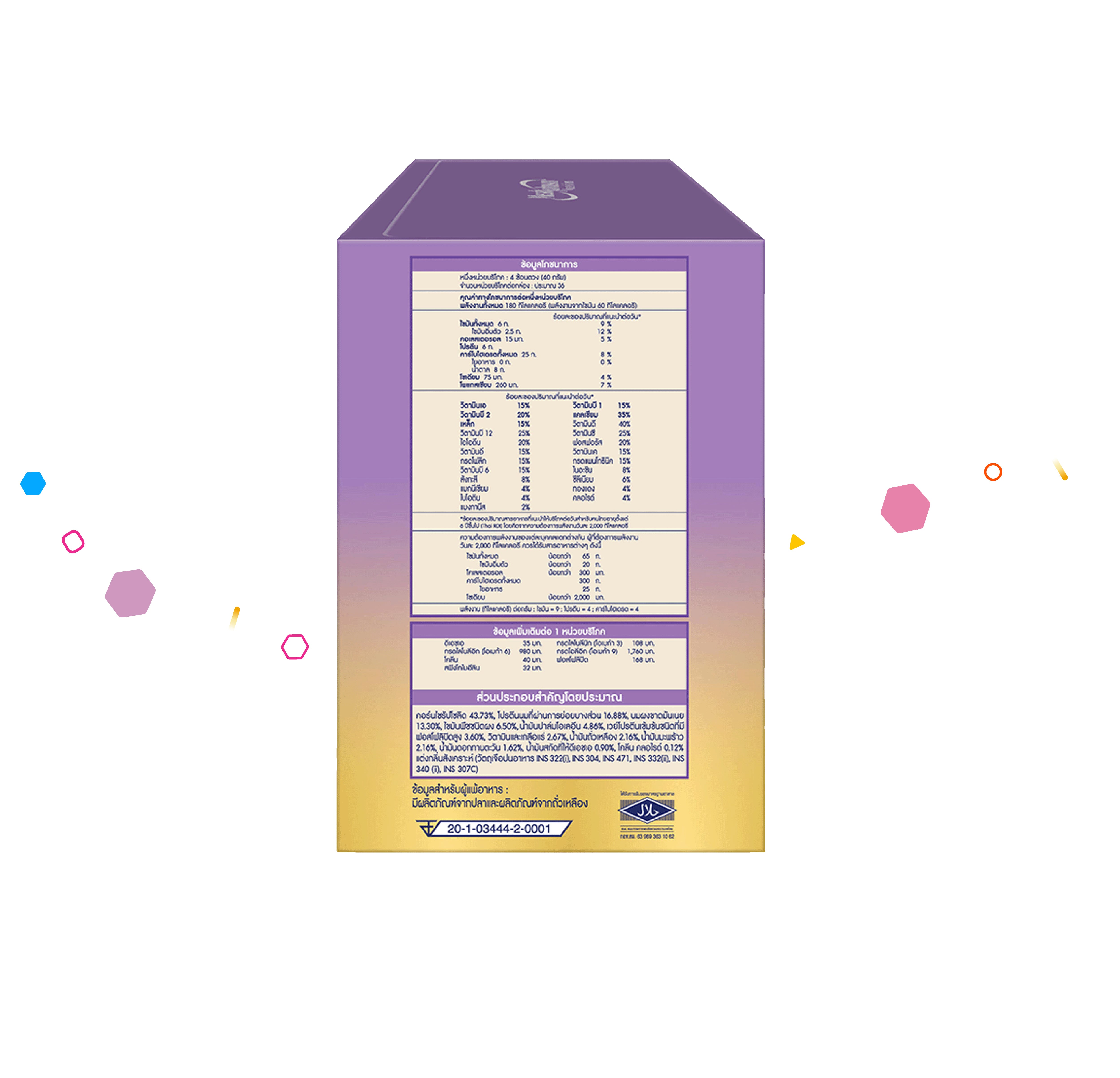 - สูตรที่มีองค์ประกอบของ MFGM, DHA และวิตามินบี12 ซึ่งมีส่วนช่วยในการทำงานตามปกติของระบบประสาทและสมอง