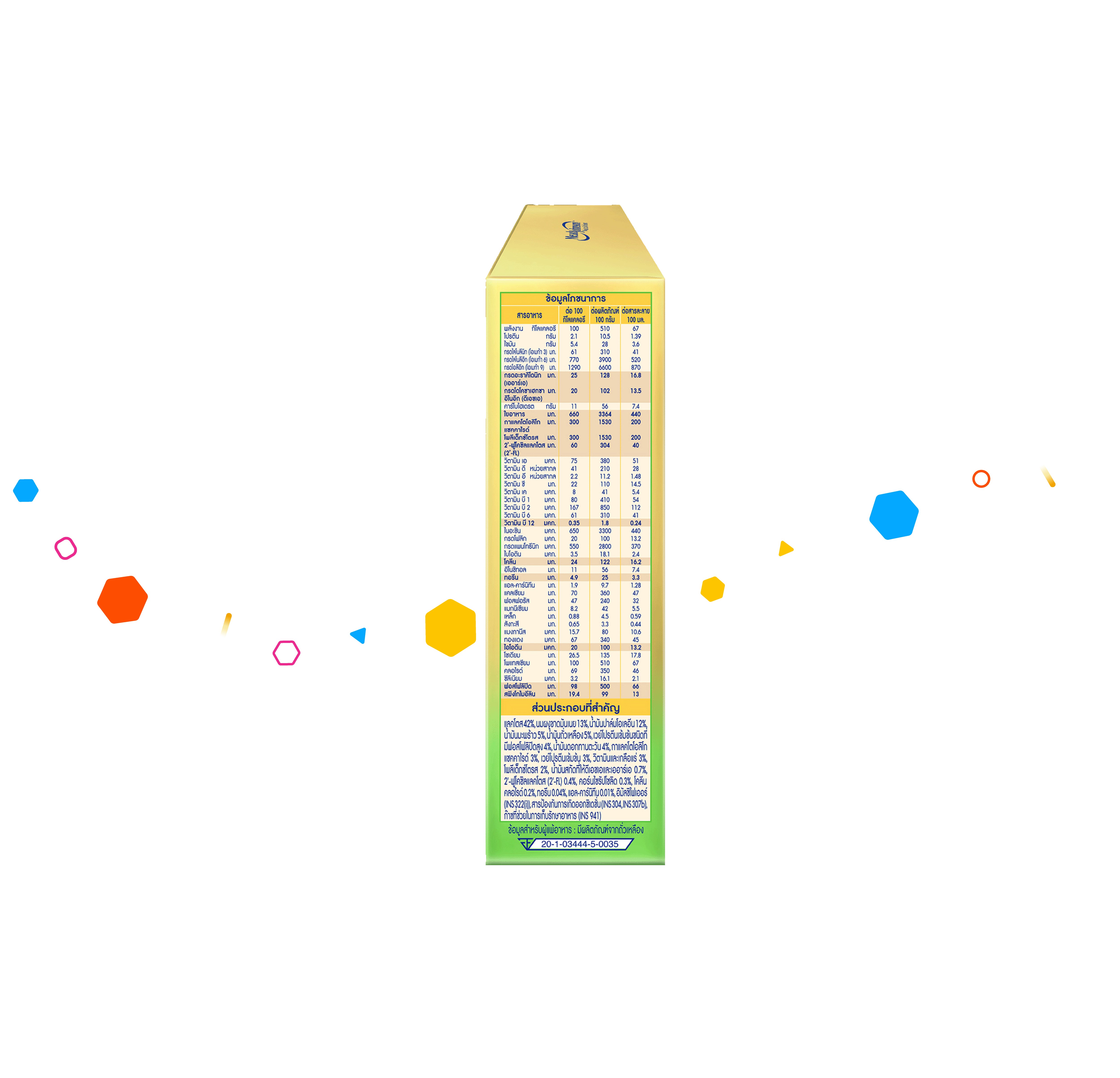 - มี DHA 102 มก. ARA 128 มก. ต่อ 100 กรัม