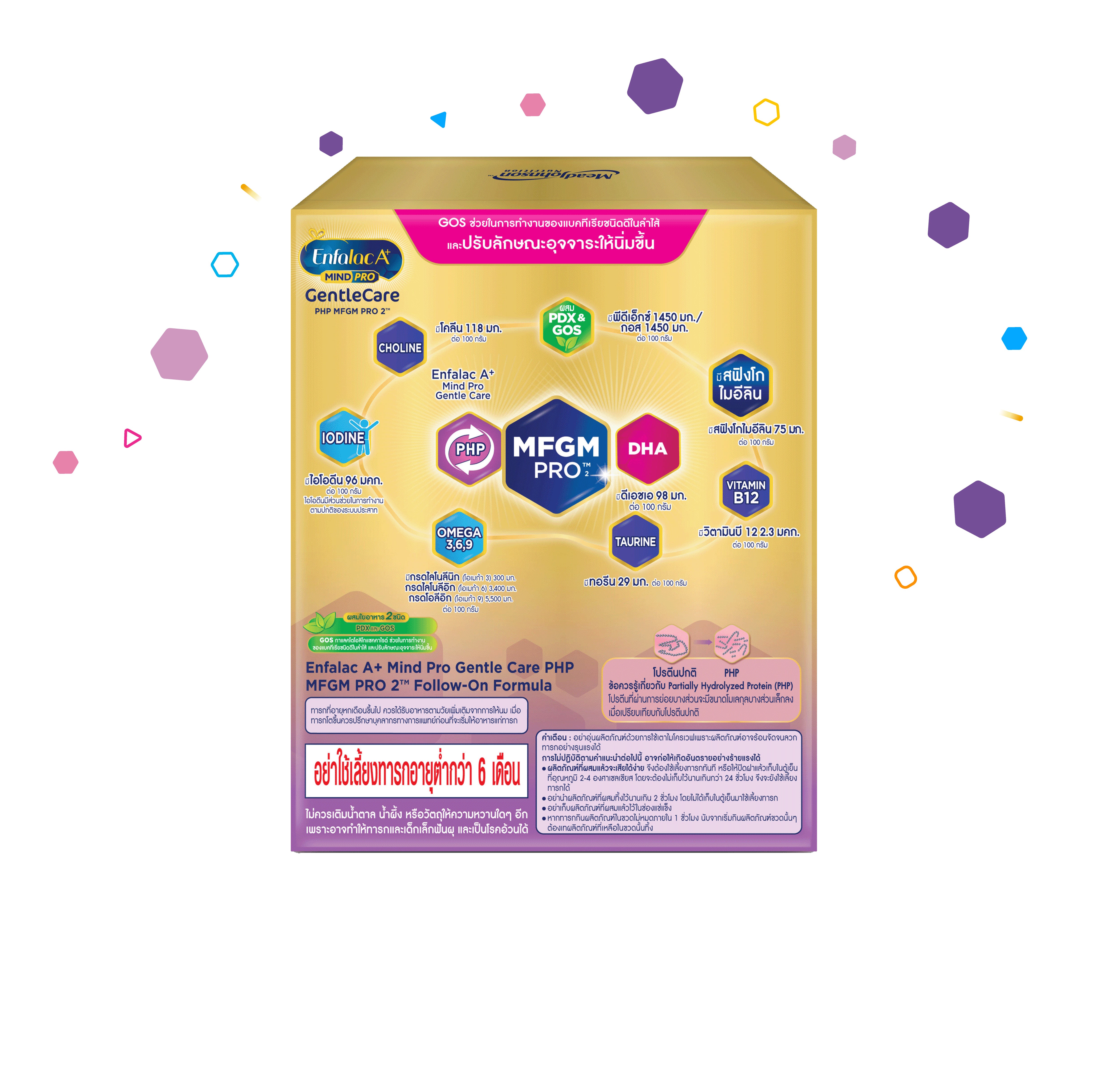สูตรผสม Partially Hydrolyzed Protein (PHP) โปรตีนนมที่ผ่านการย่อยบางส่วน จะมีขนาดเล็กลงเมื่อเทียบกับโปรตีนปกติ