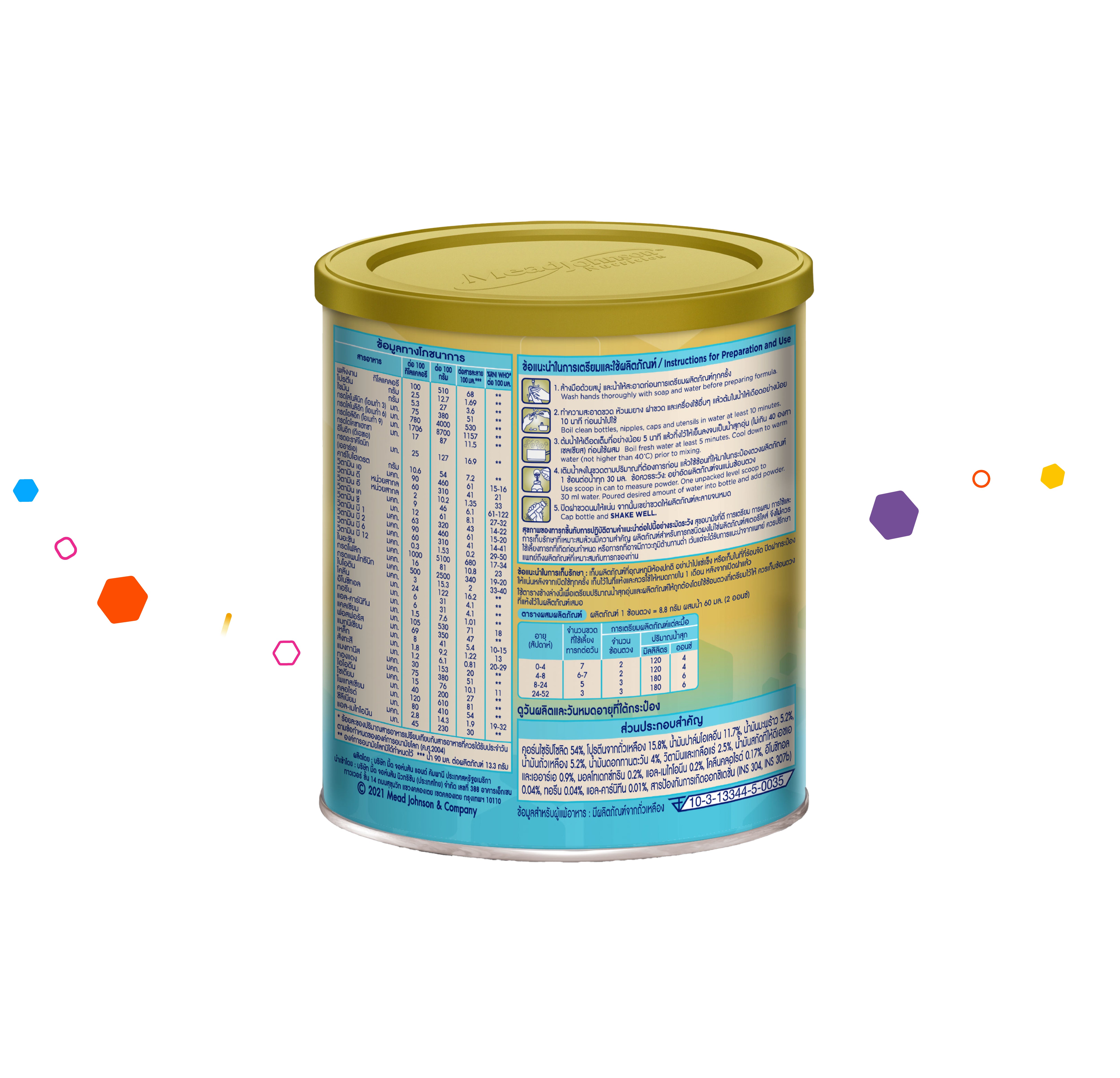 - มีสารอาหารครบถ้วน รวมถึง DHA 17mg และ ARA 34mg/100kcal ในปริมาณที่ช่วยส่งเสริมพัฒนาการทางสมองและสายตา