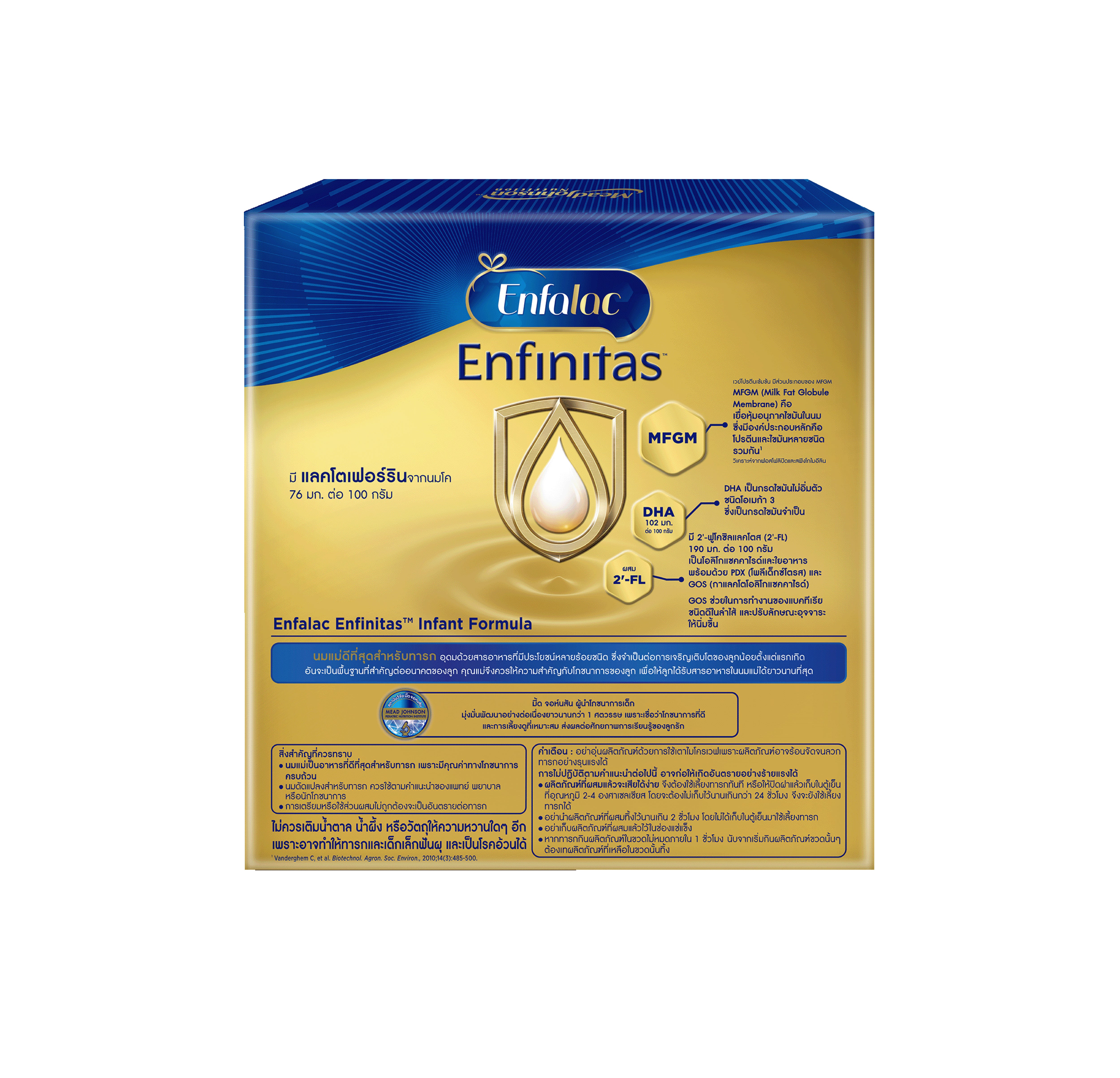 ใหม่ เอนฟาแล็ค เอนฟินิทัส สูตรที่พัฒนาไปอีกขั้น มีแลคโตเฟอร์ริน*, MFGM, DHA และ 2'-FL